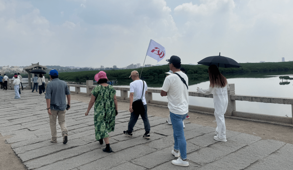 泉州市にある洛陽橋(世界遺産)を見学する様子